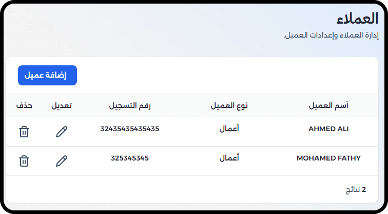 كل العملاء والمنتجات مسجلة في مكان واحد، مما يسهل إدارتها والتحكم بها ضمن شركتك.
