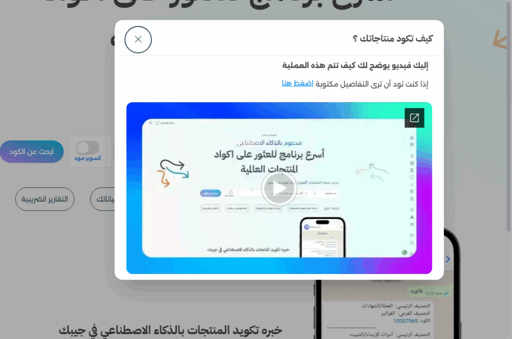 سيظهر لك هذا الفيديو شاهده إذا كنت تريد أن ترى كيف يتم تكويد المنتجات.
