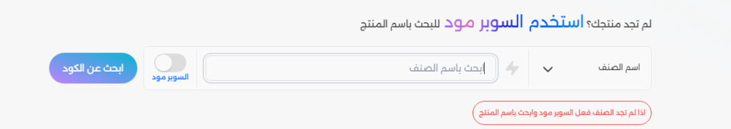 هو ميزة ذكية و دقيقة يتم تفعليها للبحث عن كود المنتج إذا لم تستطع الوصول إليه.