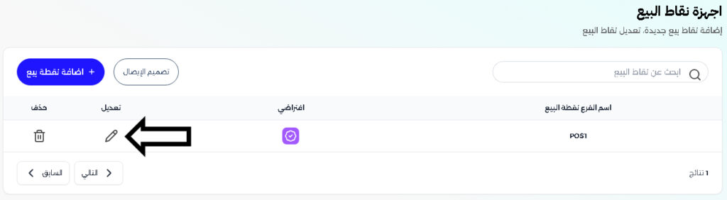 3- اضغط على علامة القلم بجانب اسم الفرع (ماكينة POS) ,